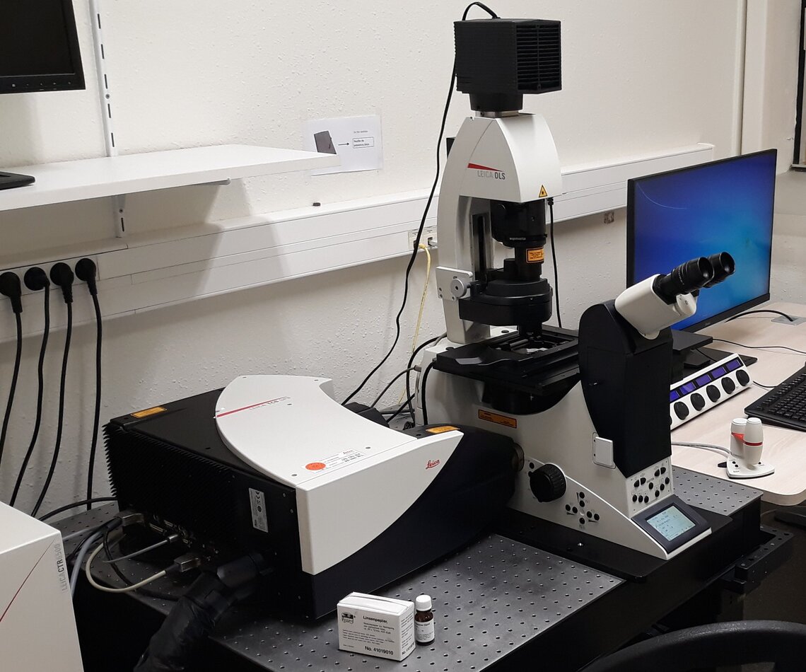 Le principe de la microscopie confocale à balayage laser est de réaliser des sections optiques permettant une imagerie tridimentionnelle. Le Leica SP8 est un système spectral sans filtres qui permet d’adapter la bande spectrale d’émission à tous type de sondes fluorescentes. Il offre une possibilité de balayage spectral pour caractériser un fluorophore ou pour séparer deux sondes dont les spectres se chevauchent. Il est équipé de quatre lasers pour couvrir l’ensemble des fluorophores visibles et proche IR. Ses trois détecteurs permettent une acquisition simultanée de deux canaux de fluorescence, le troisième détecteur est dédié à l'imagerie à champ clair